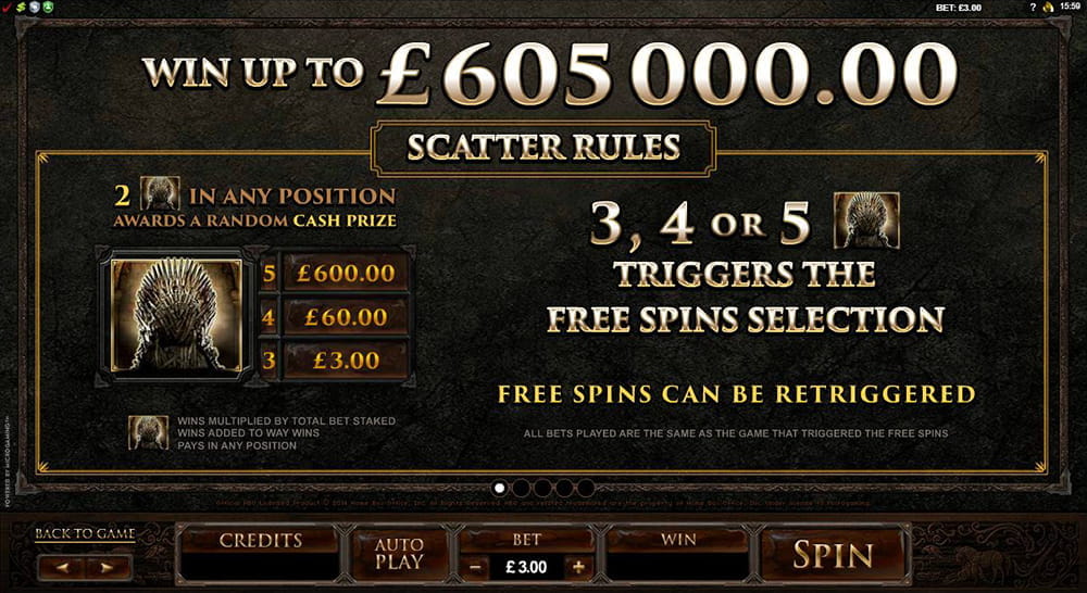 Ja, ihr könnte den Spielautomaten zur bekannten Fernsehserie auch gratis spielen. Ihr braucht dazu auch nicht stundenlang das Internet zu durchforsten. Auf unserer Seite könnt ihr nämlich auch Game of Thrones kostenlos spielen, solange ihr Lust dazu habt. Es ist die beste Option, in das Spiel hineinzuschnuppern.