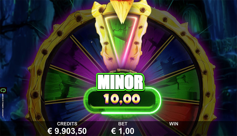 - Wheel Bonus: This bonus can be randomly triggered by any Wild Symbol appearing on the reels. When activated, players spin a wheel divided into wedges. The wheel awards one of four distinct prizes: Grand, Mega, Major, or Minor, determined by where the pointer lands.