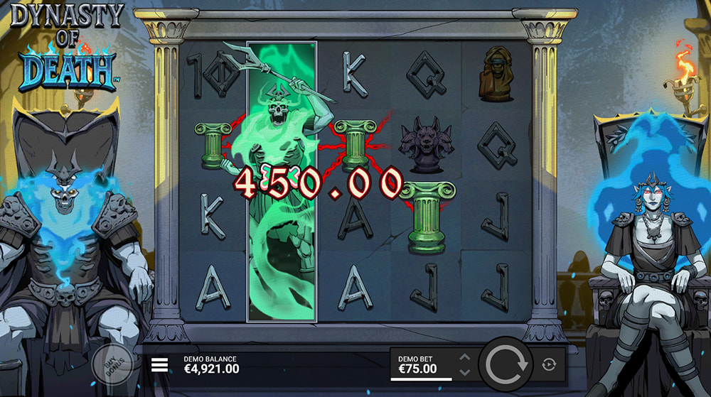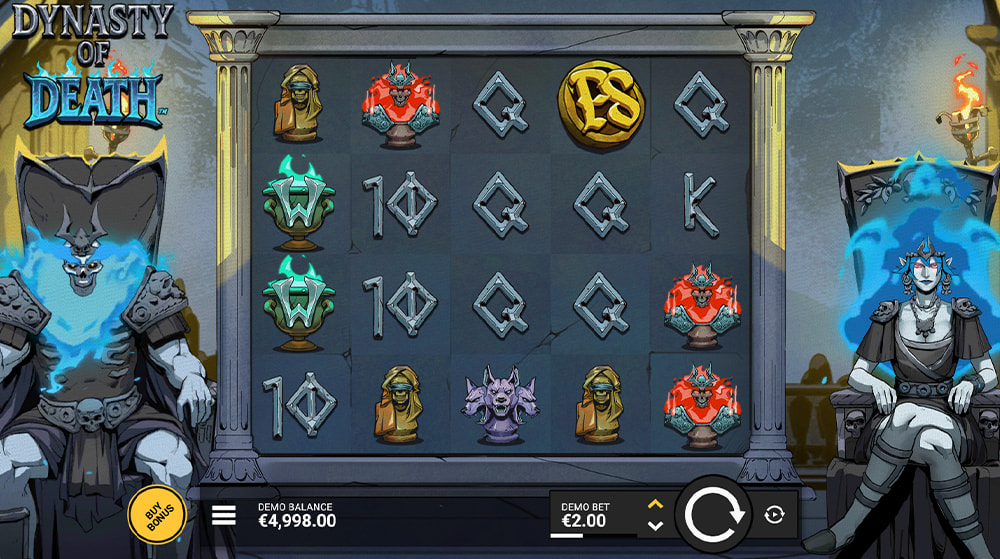 Yes, Dynasty of Death features bonus buy options. Players can directly purchase entry into features like King's Defence and Queen's Dominion or activate different FeatureSpins™ modes. We've included more details as well as corresponding costs in the bonus buy section.
