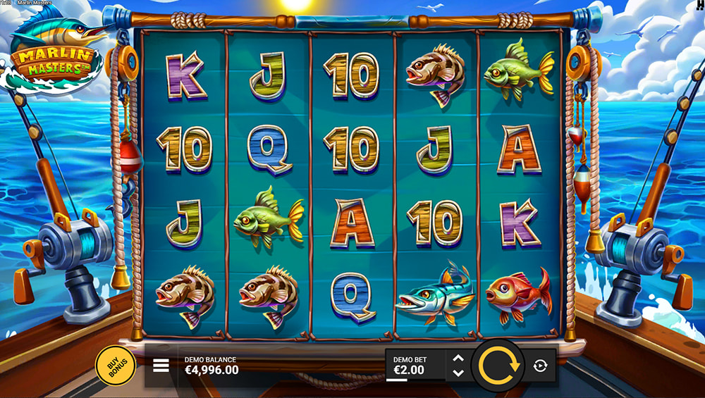 - PLENTY OF FISH IN THE SEA BONUS FEATURE: Triggered by landing 5 FS symbols, this bonus provides 10 free spins where every Marlin symbol carries a minimum 5x multiplier. Each spin guarantees at least one Marlin and one Fisherman symbol.