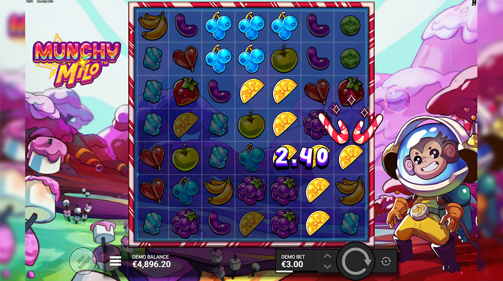 Released by Hacksaw Gaming on April 9, 2026, Munchy Milo delivers an immersive 7×7 grid experience with cluster pays. The game offers a max win potential of 10,000x your stake. You get to explore a planet of sweets alongside Milo the monkey. The slot’s signature Jolt Frames and Chain Reaction are pivotal for forming new winning clusters. Learn more from our review and try the game for free or for real money.