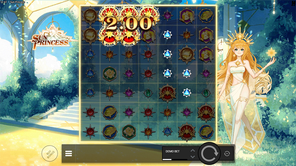 The core gameplay in Sun Princess unfolds on a 7×7 grid, where wins are formed by landing clusters of matching symbols. Low-paying gems and higher-paying themed symbols, like the Crown and Princess, drive base game payouts. Wild symbols contribute to creating more frequent clusters and can gain multipliers. The Scatter symbol is crucial, acting as the gateway to the slot’s more elaborate and action-packed bonus games.