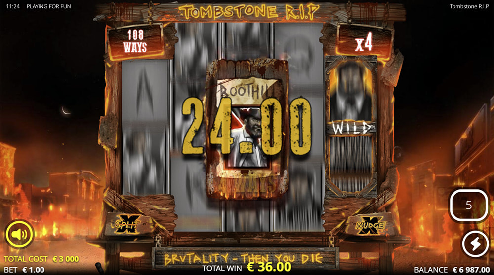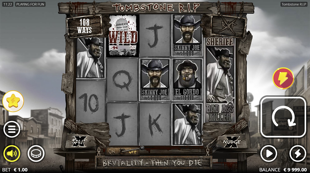 Tombstone R.I.P. has a heavy, unforgiving style that feels very different from most new slots online. The base game revolves around xNudge Wilds, which can extend into view and increase their multiplier as they move, plus xSplit Wilds on the final reel that split symbols to create more winning routes.