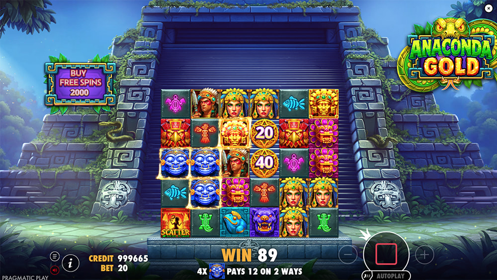 Anaconda Gold uses an Adjacent Ways payout system, where wins form from left to right. The Aztec Queen stands as the highest-paying symbol, while several animal symbols comprise the lower end of the paytable. A Wild symbol substitutes for others to aid in forming winning combinations, and landing 3 to 6 Scatter symbols is the key to activating the free spins round.