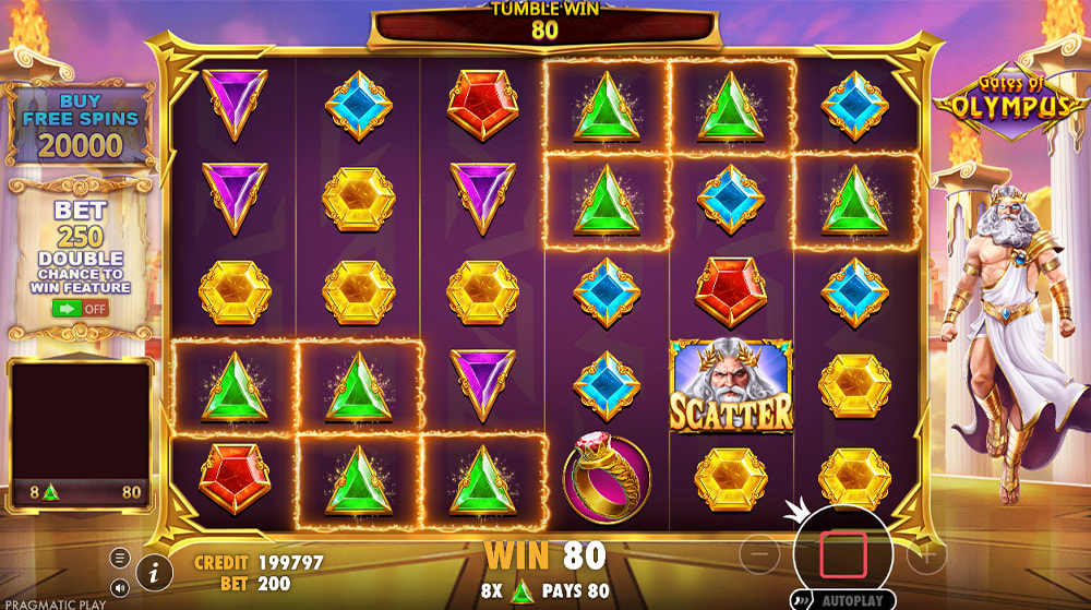 Gates of Olympus is popular because it is easy to understand but still feels dramatic. You only need 8 matching symbols anywhere on the reels, and the tumble feature can keep paying as long as new matches keep landing.