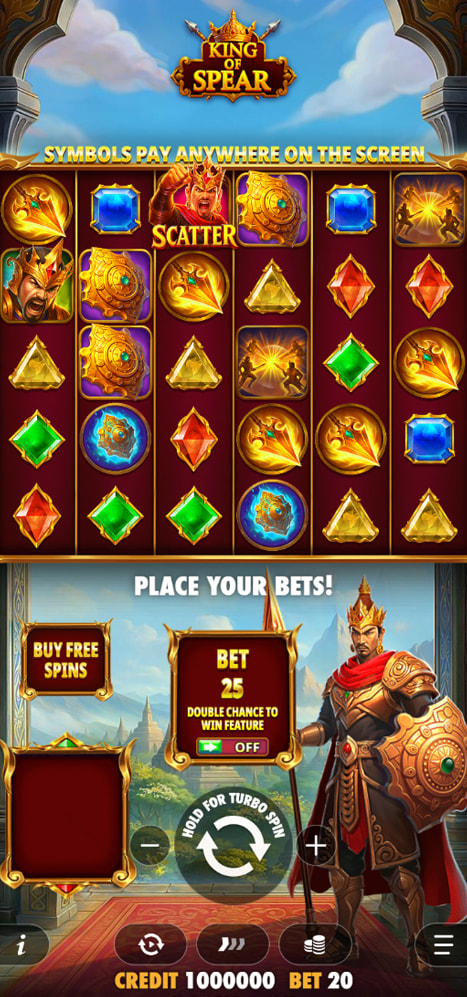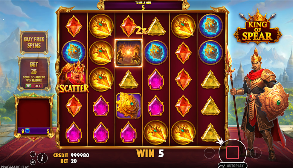 The key features in King of Spear are its powerful multiplier symbols and the progressive free spins round. The game also utilizes the Tumble feature, which adds the potential for multiple wins to occur consecutively. These mechanics work in tandem to create a high-volatility experience.