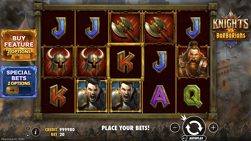 - Transforming Wilds: Activated when a Knight Scatter or Barbarian Scatter lands in the marked central position. All corresponding Knight or Barbarian paying symbols on the reels, along with the triggering scatter, convert into Wild symbols. This mechanic significantly boosts winning potential during the base game.