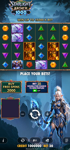 Yes, Starlight Archer 1000 features Bonus Buy options. Players can instantly purchase the Free Spins round for 100x their current bet, detailed further in the bonus buy options section.