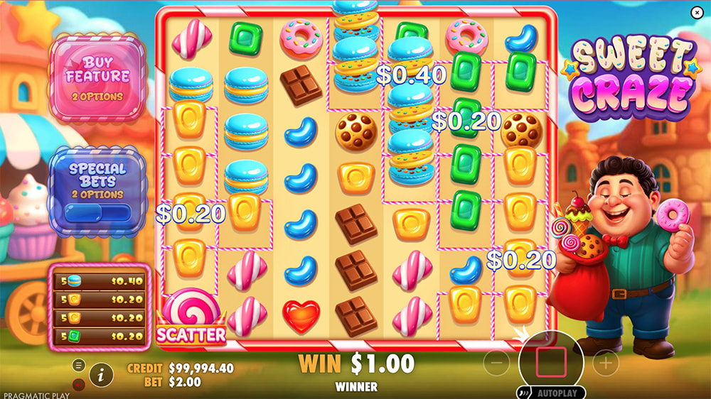 A demo game for Sweet Craze is available, allowing you to experience its features and mechanics without financial commitment. Playing the demo is an excellent way to understand the game's dynamic flow before engaging in real money play. Access the demo in the Demo Game section.