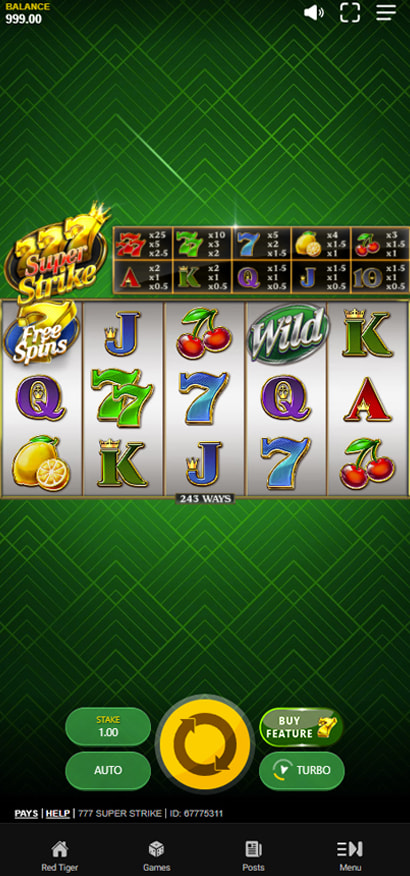 777 Strike does not include any bonus buy options. Players need to rely on natural gameplay to trigger features and progress through the bonus rounds. This reflects Red Tiger Gaming’s more traditional approach to this classic-style slot design.