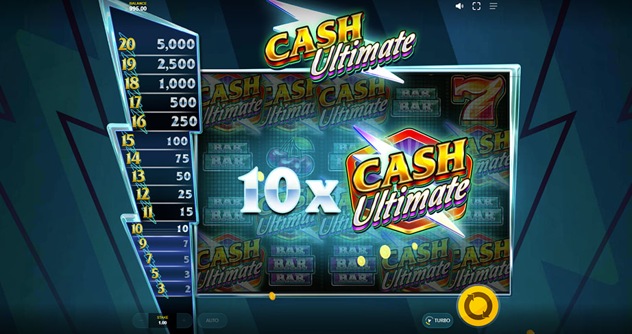 The slot’s paytable features both low-paying bar symbols and higher-value premium symbols. The highest-paying regular symbol is the 7, which pays 3x for a five of a kind. Cash Ultimate functions as the key to activating the game’s primary feature, which drives its high-potential payouts.
